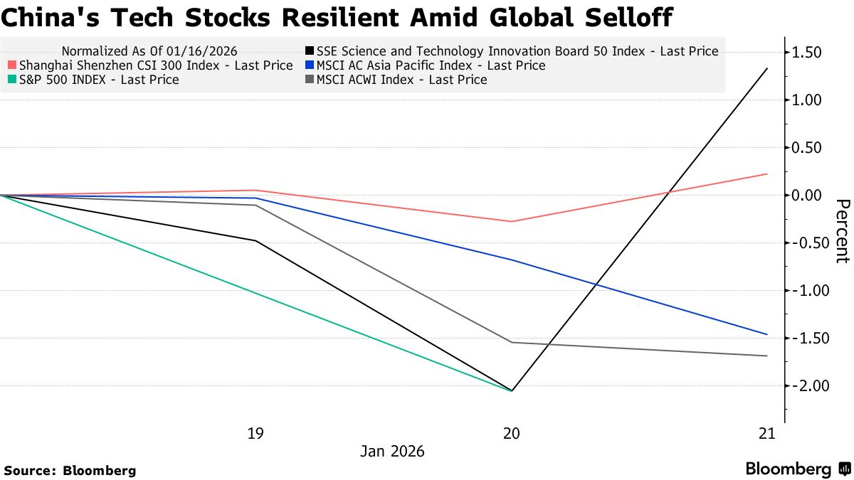 21/01/26 Bloomberg: Le azioni cinesi si riprendono grazie alle crescenti scommesse tecnologiche, sfidando le vendite globali