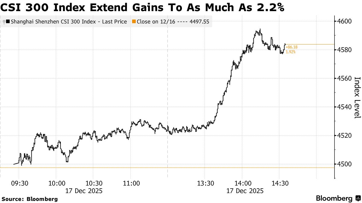 - The Nasdaq-style STAR 50 Index jumped as much as 4.3%, and the broader onshore benchmark CSI 300 gauge was up 0.5% in mid-afternoon trade, driven by a fresh pledge by Chinese policymakers to accelerate efforts to develop homegrown artificial intelligence.